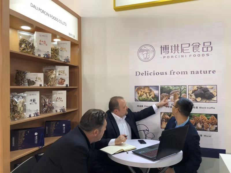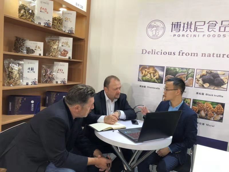展會(huì)第一天,外國客商在博琪尼食品有限公司展位前紛紛駐足,詢問產(chǎn)品相關(guān)信息,了解產(chǎn)品質(zhì)量、規(guī)格等,客商們對(duì)博琪尼食品公司優(yōu)質(zhì)的產(chǎn)品質(zhì)量及豐富的出口經(jīng)驗(yàn)給予充分肯定。其中,來自波蘭的客商Stanistaw Tomkowiak及其合伙人與博琪尼總經(jīng)理龔瑞波進(jìn)行洽談之后,就公司主營產(chǎn)品速凍牛肝菌達(dá)成合作意向,初步訂購數(shù)量為兩個(gè)柜,并有意簽署長期合作合同。法國客商April對(duì)博琪尼出口產(chǎn)品速凍松茸頗為感興趣,表示在法國越來越多的餐廳選擇用優(yōu)質(zhì)松茸及牛肝菌作為輔材加入到菜品當(dāng)中,并受到食客的喜愛,法國對(duì)菌類的需求有增無減,希望與博琪尼達(dá)成合作,將中國的優(yōu)質(zhì)菌類帶給法國人民。